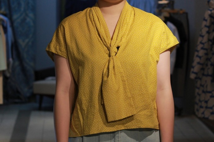 クラッシックなイメージのボウタイブラウス。
