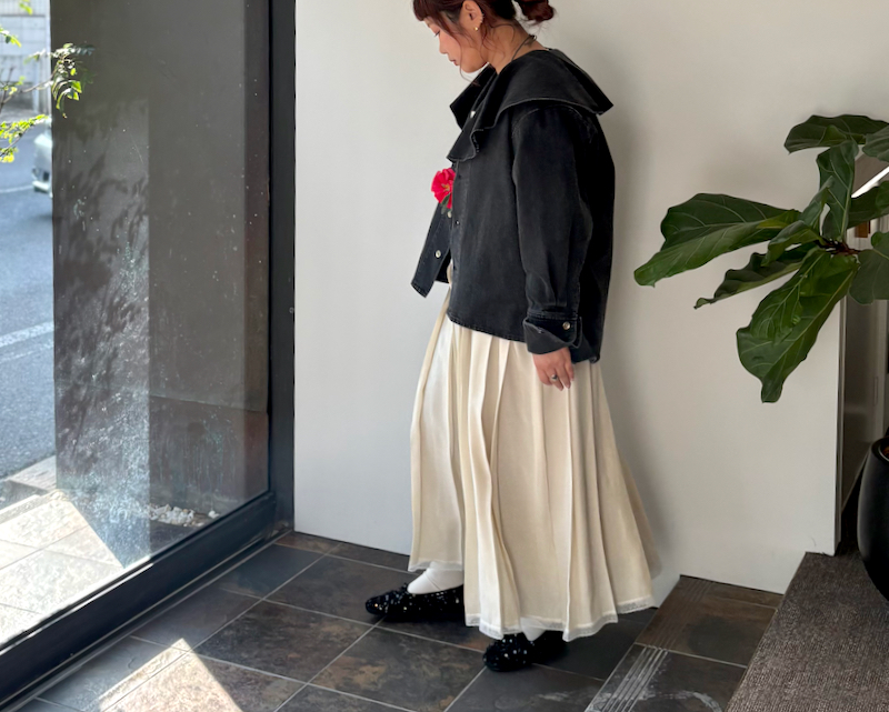 軽やかな素材を使用しているので、動くたびにプリーツがゆれてステキですよ♡