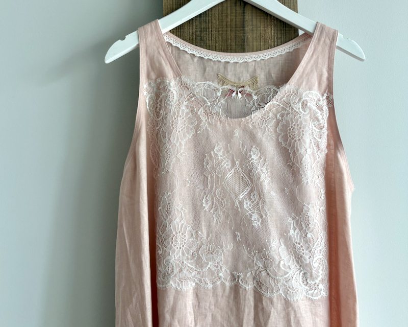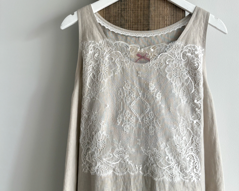 四角い美しいレースが縫い付けられていて、胸元の開いたワンピースの下に着ると、